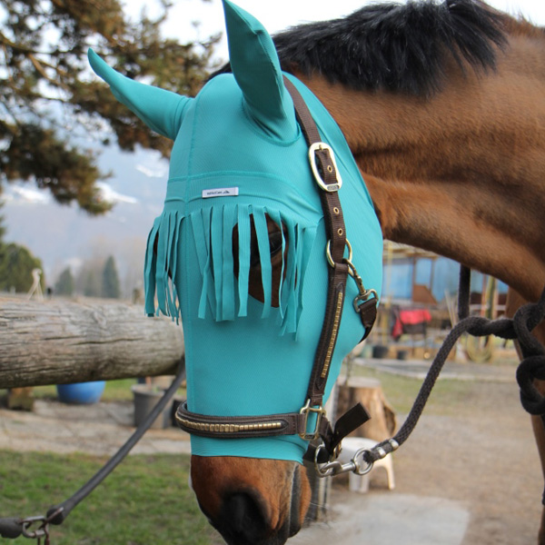 Pferde Haube mit Stirnfransen | Insektenschutz | schützen von Kopf, Augen, Ohren, Hals